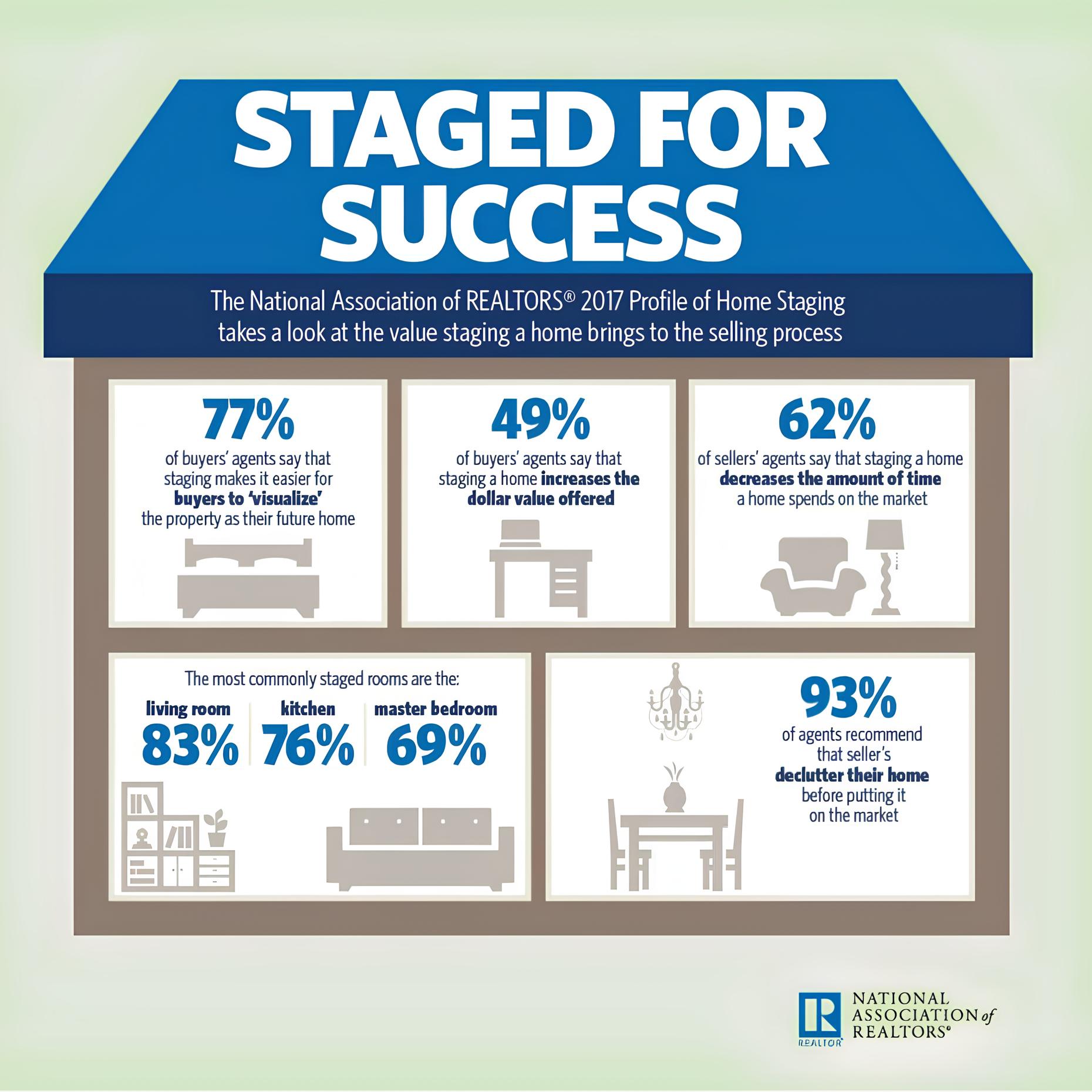 9 out of 10 buyers begin their home search online & form opinions within 10-seconds. Professionally staged homes stand-out in the crowd and make a fantastic 1st impression to generate immediate buyer interest online & more showings.